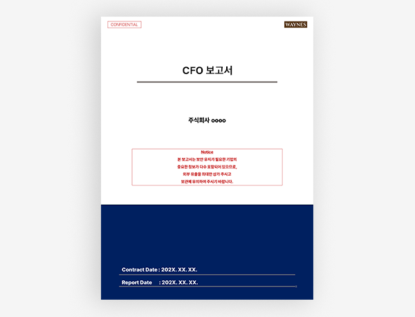 CFO 서비스는 고객사의 재무정보 심층 분석을 통한 솔루션 제공을 통해 성장을 위한 건전한 재무구조로 변화시키고, 재무와 관련된 중대한 의사결정을 돕는 웨인즈만의 독창적인 서비스입니다.